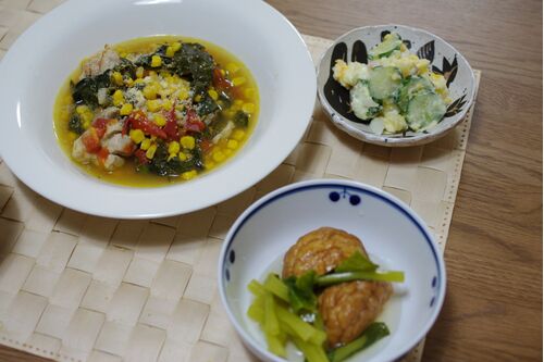 朝…キャベツとソーセージ炒め、トースト 昼…きしめん、コロッケ 夜…チキンに重ねて煮るだけ、クラシックポテトサラダ、魚丸揚げと小松菜の煮浸し、ごはん 久しぶりにソーセージとキャベツを炒めてみた。うーむ、冬や春のキャベツのほうが美味しい…(そんなこ…